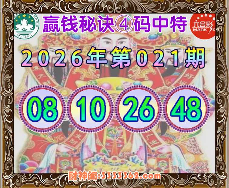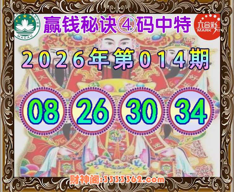 014期:【赢钱秘诀】 👘④码中特👘【08.26.30.34】开:26