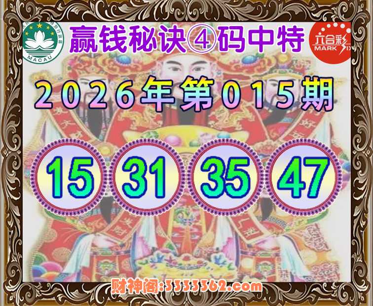 015期:【赢钱秘诀】 👘④码中特👘【15.31.35.47】开:31
