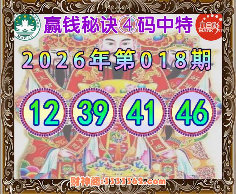 018期:【赢钱秘诀】 👘④码中特👘【12.39.41.46】开:39