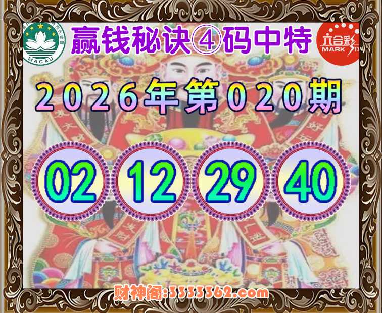 020期:【赢钱秘诀】 👘④码中特👘【02.12.29.40】开:12